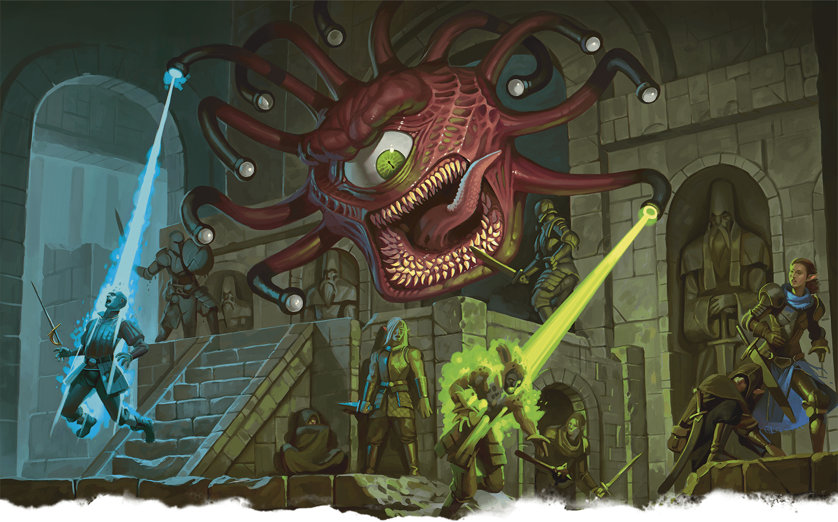 Beholders are a particular threat to adventurers because both gravitate toward mysterious ruins and sites of great magic. Many beholders collect the magic items and petrified bodies of heroes they’ve defeated, displaying them as trophies.” – Monster Manual 2024